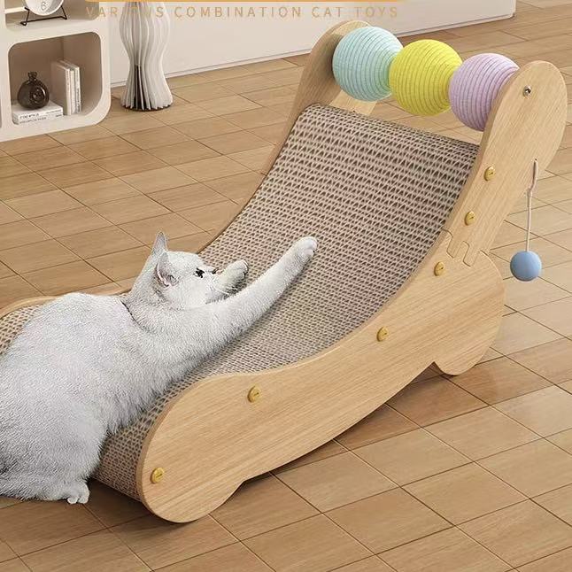 A recliner-style scratching board that lets your cat scratch comfortably and snooze right after—saving your furniture in style.