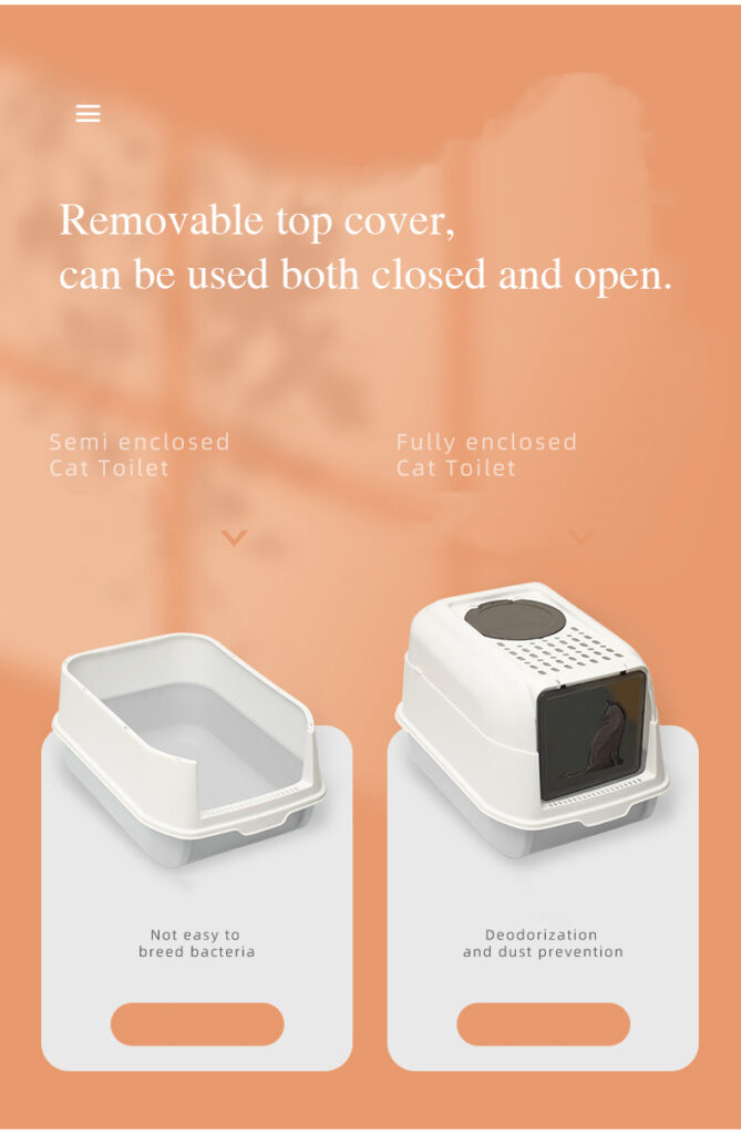 Offer your cat superior comfort and your home unmatched cleanliness with this large, fully enclosed top-entry litter box. Its innovative design features a detachable dome and a high-walled base that work together to virtually eliminate odor and scatter. The spacious interior accommodates cats of all sizes, while the textured top lid provides secure footing for easy entry and exit. Crafted from durable, easy-clean plastic with a smooth, non-stick surface, maintenance is quick and hassle-free. This intelligent solution not only supports your cat's natural privacy needs but also transforms litter box upkeep into a simple, odor-free routine—making it an ideal choice for modern, multi-cat, or space-conscious households.