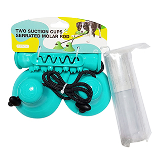 This is our company's original patented product, which can be used as a water toy. An upgraded version of the suction cup toy: a combination of suction cup and teething toy design, using two extra-large suction cups that can adhere to any surface. The suction cup pull design increases the dog's interest in playing due to the pull of the string, while the teething toy helps clean the dog's mouth while playing.