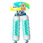 Our company's original patented product features a chewable pet dental toy design. It combines a hard nylon shell with a soft inner core, and its newly designed cleaning channels and serrated chewable bumps provide superior oral cleaning power compared to similar products on the market. This product comes as a set of two dog toothbrushes.