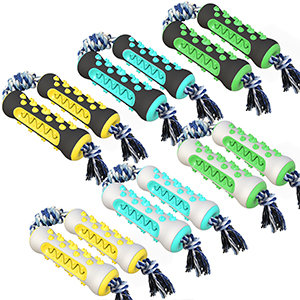 Our company's original patented product features a chewable pet dental toy design. It combines a hard nylon shell with a soft inner core, and its newly designed cleaning channels and serrated chewable bumps provide superior oral cleaning power compared to similar products on the market. This product comes as a set of two dog toothbrushes.
