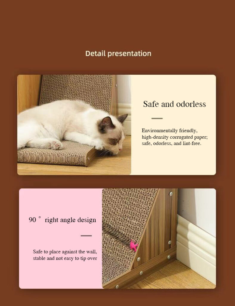 Give your cat the perfect scratching outlet with our space-saving L-shaped corrugated cardboard scratcher. Its sturdy vertical design encourages healthy stretching and natural claw maintenance, while the dense, durable cardboard resists shredding for long-lasting use without messy flakes. This dual-function scratcher doubles as a playful lounge spot, protecting your furniture by satisfying your cat's instincts in one compact, effective corner unit.