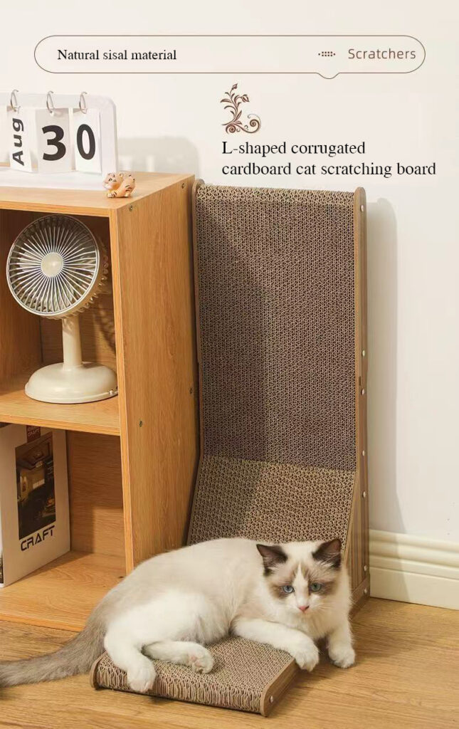 L-shaped cat scratching post