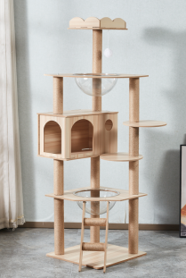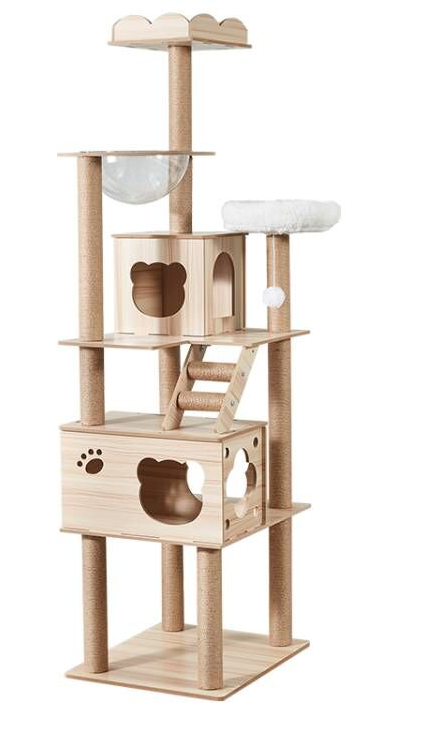 Crafted with sturdy MDF, this cat tree provides a stable and durable play space designed to withstand active climbing and scratching. Its smooth, pet-safe surface is easy to clean and gentle on paws, while integrated sisal scratching posts satisfy natural clawing instincts. Multi-level platforms and cozy hideaways encourage exercise, rest, and observation, helping to redirect attention from your furniture. An ideal blend of function and feline-friendly design for a happy, active cat.