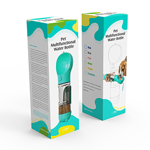 This is our company's original patented product, a multi-functional portable pet travel water bottle made with new environmentally friendly materials. It is heat-resistant, dishwasher safe, and will not deform or leak. It can be operated with one hand, making feeding easier, and includes a dog food container. The large button design allows for one-touch water dispensing and also features a backflow function. It also includes a pet waste cleaning shovel and a pet waste storage bag.