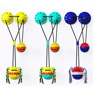 This is our company's original patented product, usable as a water toy. It features a classic suction cup and pull rope design, utilizing two reinforced suction cups, each capable of withstanding a maximum pull of 56kg. The suction cups hold the toy in place, and the pull rope, designed to withstand the pull of a tiger, creates a tug-of-war effect, encouraging your dog's playful enthusiasm. An additional bouncy ball, using a high-elasticity rope, bounces back and forth as the dog pulls, enhancing the interactive fun. This multi-functional pet toy combines tug-of-war, squeaking, treat-dispensing, chew toy, and bouncing functions. The chew ball also comes with a chew rope, providing your dog with a variety of enjoyable experiences.
