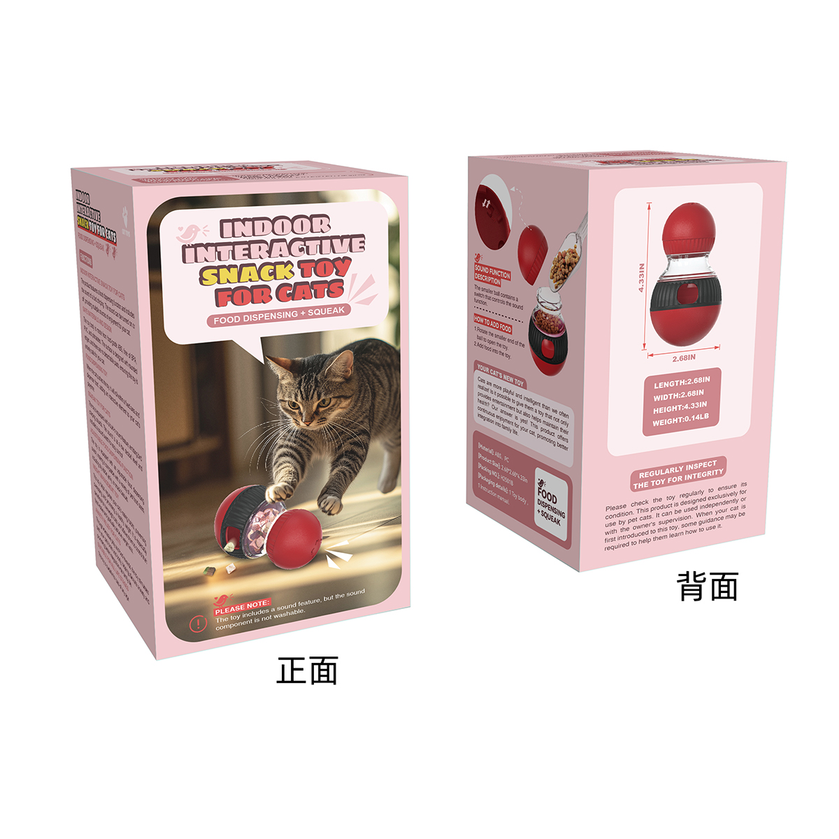 Our company's original patented product is a sound-emitting cat treat-dispensing ball. It consists of two hemispheres of different diameters; one hemisphere has a built-in sound-emitting device, while the other hemisphere has a rotatable, adjustable treat-dispensing hole. It can be used independently and is compatible with 99% of pet foods and treats on the market. During use, the product will roll in a curved path within a certain range and emit a sound. Treats are dispensed while the cat plays, slowing down their eating speed while increasing their interest in play and potentially improving their intelligence.