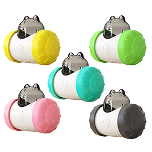 This is our company's original patented product, a multi-functional treat-dispensing toy suitable for both cats and dogs. It requires no electricity, and its wheel design allows it to move automatically while your pet plays. The toy's self-weighted base and balance system ensure it won't tip over no matter how much your pet shakes during play. It also features a treat-dispensing hole to drop treats, increasing your pet's interest and potentially boosting their intelligence.