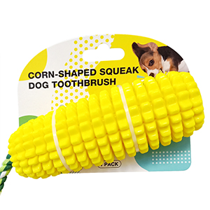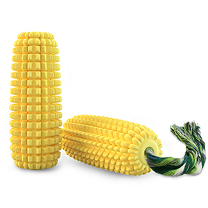 This is our company's original patented product, which can be used as a water toy. It features a built-in sound-producing device that emits a whistling sound when pets chew on it, increasing their interest and serving both dental hygiene and play purposes. The corn-shaped design comes with a pure cotton chew rope, and the corn kernels are newly designed teething bumps. It can also be used with treats or dog toothpaste.