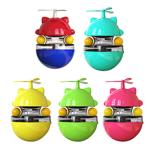 This is our company's original patented product, a cat-specific treat-dispensing and cat-teasing toy. It features an adjustable dispensing hole, allowing you to choose between one or two holes to control the speed of the treat. The newly added windmill spiral design further attracts the cat's attention. The non-tipping design makes it more engaging for cats to play with; a gentle push causes the toy to swing back and forth, dispensing treats. No matter how the cat plays, the toy will not tip over. The toy has a recessed track and two toy balls in the middle, increasing the cat's interest and enjoyment.